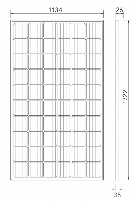 Dzięki kompaktowym wymiarom (1722 × 1134 × 35 mm) i wadze 22,2 kg panel łatwo dopasować do większości systemów montażowych.