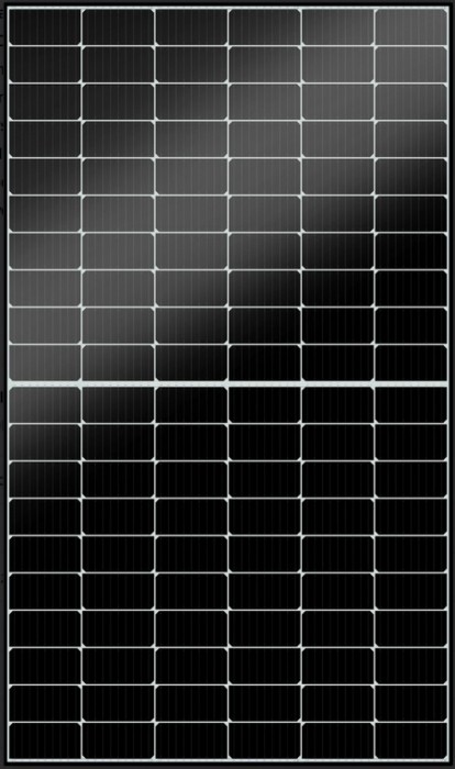 Moduł składa się ze 108 ogniw monokrystalicznych typu half-cut w technologii PERC (Passivated Emitter and Rear Cell), która pozwala na skuteczniejsze wykorzystanie promieniowania słonecznego. Dzięki temu panel osiąga imponującą sprawność 20,48%, co przekłada się na wyższe uzyski energii w porównaniu do standardowych rozwiązań.