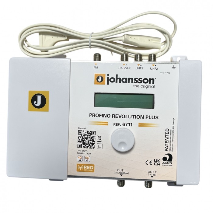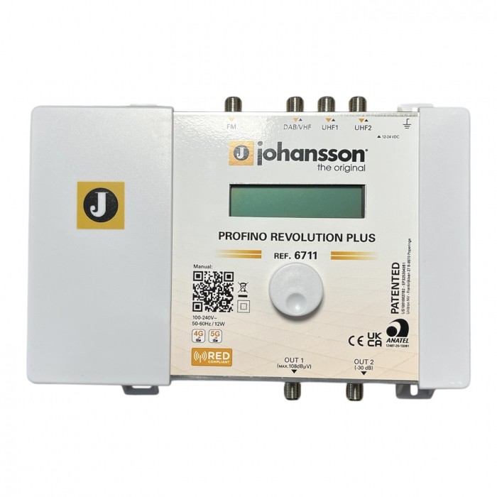 Wzmacniacz Johansson PROFINO Revolution 6711 Plus - automatyczny programowalny wzmacniacz sygnałuJohansson PROFINO Revolution 6711 Plus to nowoczesny, cyfrowo sterowany wzmacniacz sygnału naziemnego FM, VHF i UHF. Urządzenie zostało wyposażone w zaawansowane filtry oraz funkcję automatycznej regulacji wzmocnienia (AGC), co zapewnia najwyższą jakość obrazu i stabilność transmisji. Dzięki innowacyjnej technologii, Profino Revolution 6711 Plus nie ma odpowiednika na rynku i stanowi rewolucję w dziedzinie instalacji telewizyjnych.