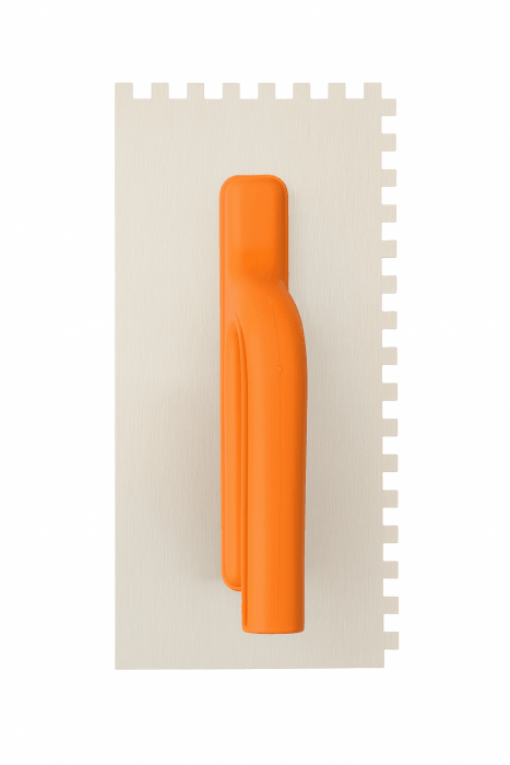 Paca zębata 6x6 mm do równomiernego „czesania” cienkiej warstwy kleju. Nierdzewna blacha zapewnia trwałość, a lekki, antypoślizgowy uchwyt ABS poprawia kontrolę w detalach i ciasnych strefach.